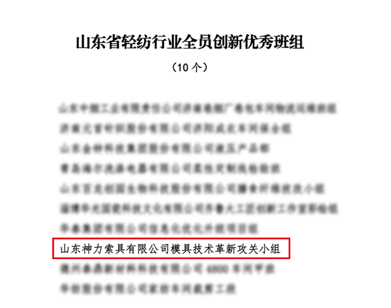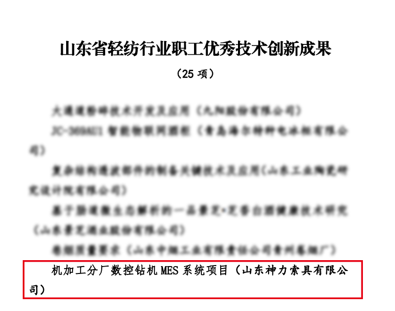 近日,山東省輕紡工會(huì)組織開展了2021年度全省輕紡行業(yè)全員創(chuàng)新競(jìng)賽有關(guān)工作,山東神力索具有限公司模具技術(shù)革新攻關(guān)小組榮獲“山東省輕紡行業(yè)全員創(chuàng)新優(yōu)秀班組”稱號(hào)、劉運(yùn)斌創(chuàng)新工作室榮獲“山東省輕紡行業(yè)勞模和工匠人才創(chuàng)新工作室”稱號(hào)、機(jī)加工分廠數(shù)控鉆機(jī)MES系統(tǒng)項(xiàng)目榮獲“山東省輕紡行業(yè)職工優(yōu)秀技術(shù)創(chuàng)新成果”稱號(hào)。