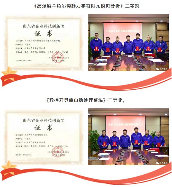 12月11日上午,神力索具辦公樓內(nèi)巨匠云集,精工薈萃。公司總經(jīng)理杜大平主持召開(kāi)了山東省企業(yè)科技創(chuàng)新獎(jiǎng)?lì)C獎(jiǎng)儀式、2021年度山東省五金制品行業(yè)技術(shù)能手暨山東省第十屆五金制品技能競(jìng)賽頒獎(jiǎng)儀式,并親自為獲得榮譽(yù)的神力巨匠們頒發(fā)了榮譽(yù)證書(shū)。