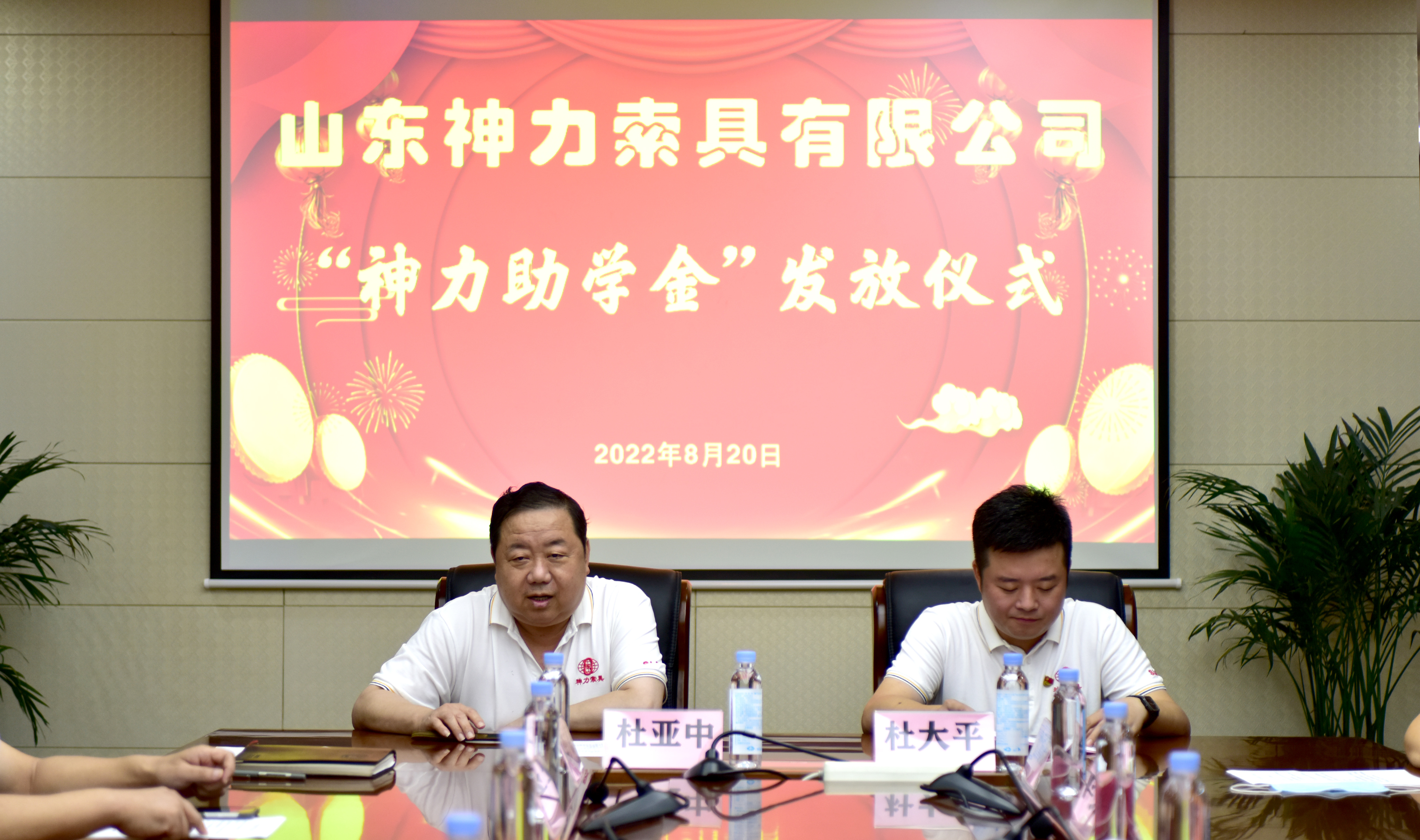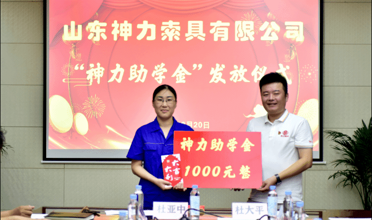8月20日上午,山東神力索具有限公司2022年“神力助學(xué)金”發(fā)放儀式在公司辦公樓四樓會(huì)議室舉行。神力索具董事長(zhǎng)杜亞中、總經(jīng)理杜大平等公司領(lǐng)導(dǎo)及12位受助學(xué)生家長(zhǎng)參加本次儀式。