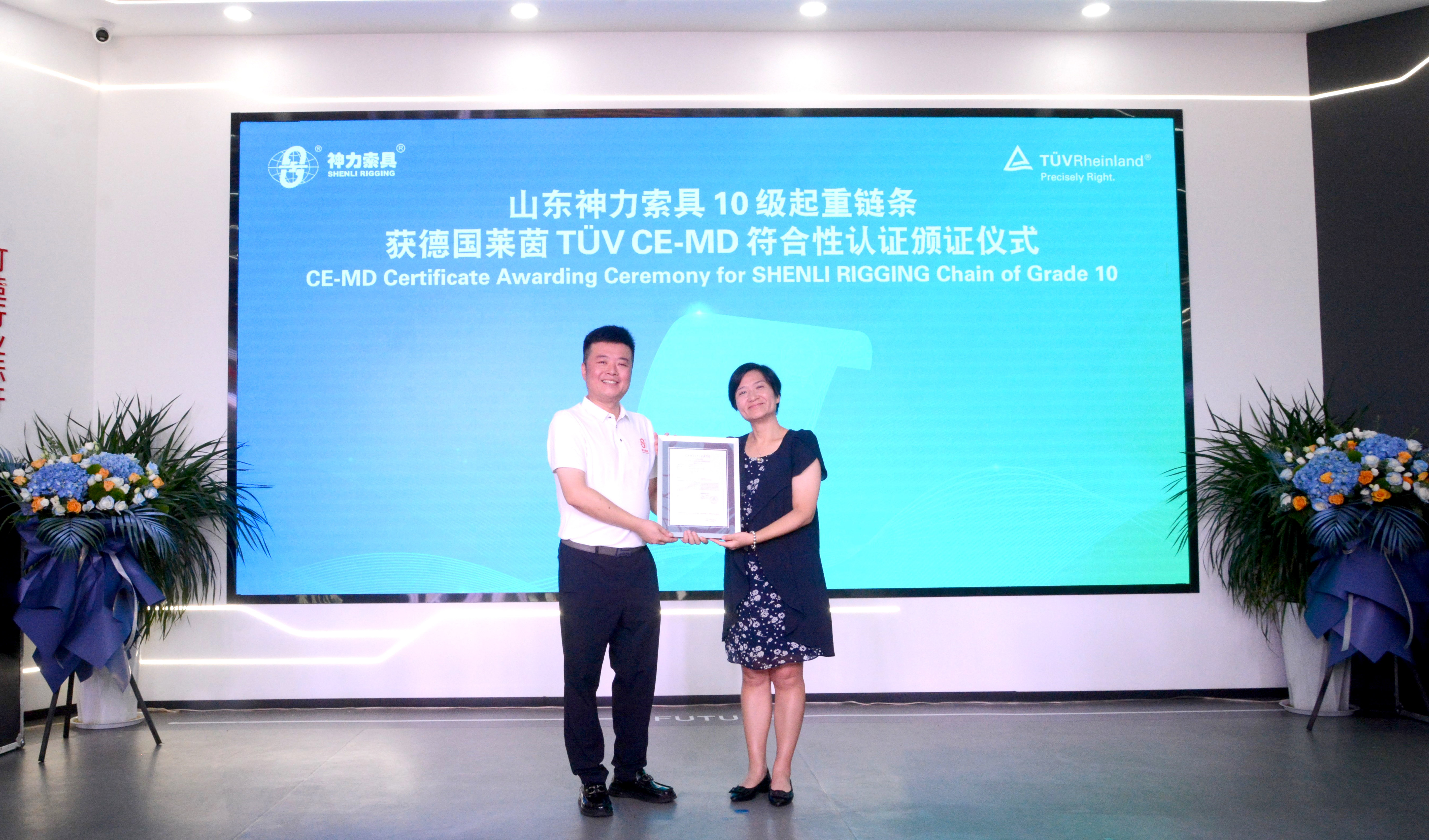 7月4日,神力索具10級起重鏈條獲得TÜV萊茵國內(nèi)首張CE-MD機(jī)械指令符合性證書。神力索具實(shí)驗(yàn)室還獲得TÜV萊茵目擊實(shí)驗(yàn)室資質(zhì)。同時(shí),雙方還簽署了戰(zhàn)略合作協(xié)議,TÜV萊茵將對山東神力索具4個系列60多個新產(chǎn)品進(jìn)行檢測認(rèn)證,助力新產(chǎn)品快速上市,進(jìn)一步提升其在國際市場的競爭力。授牌、簽約儀式在神力索具智能制造產(chǎn)業(yè)園圓滿舉辦,TÜV萊茵大中華區(qū)輕工產(chǎn)品服務(wù)副總裁熊劍蓉、神力索具董事長兼總經(jīng)理杜大平出席活動。