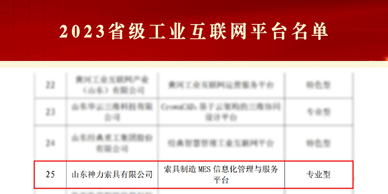 喜訊!神力索具成功入選“2023年省級(jí)工業(yè)互聯(lián)網(wǎng)平臺(tái)”