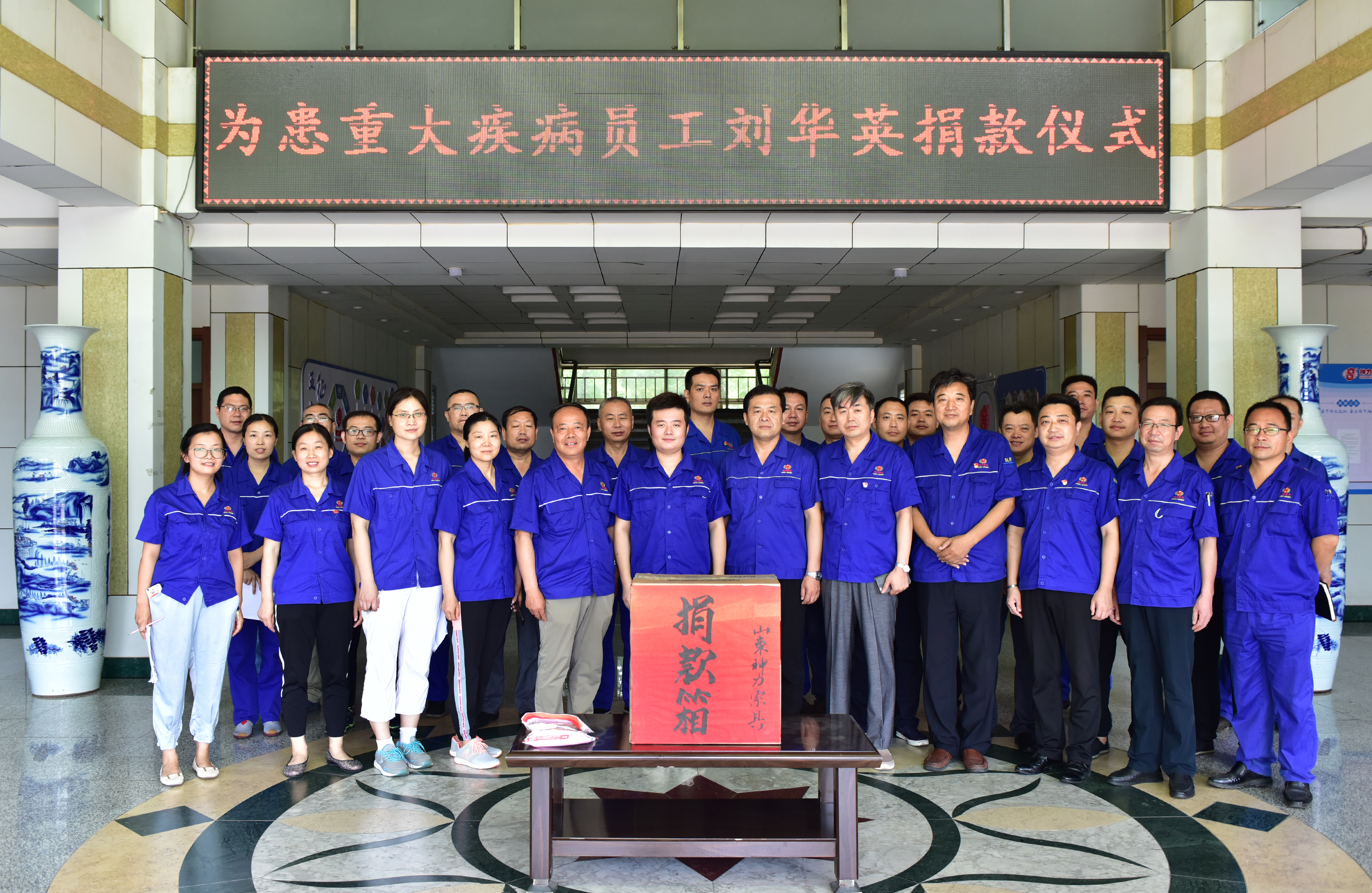 7月20日上午,山東神力索具在一樓大廳舉行為患大病職工劉華英集體捐款儀式,一場愛心捐款活動正在這里舉行。 本次捐款儀式由工會主席李廣德主持??偨?jīng)理杜大平在捐款儀式上進行...