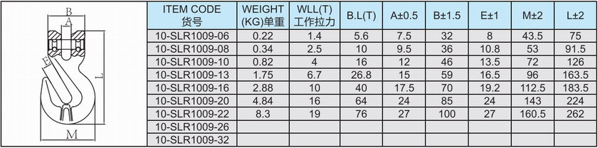 常規(guī)標(biāo)記:10-10  WLL 4 T  CE  SLR  + BATCH NUMBER(批號)