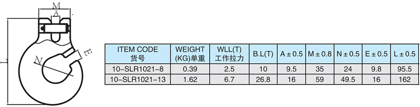 常規(guī)標(biāo)記:8-10  WLL 2.5 T  CE  SLR  + BATCH NUMBER(批號(hào))