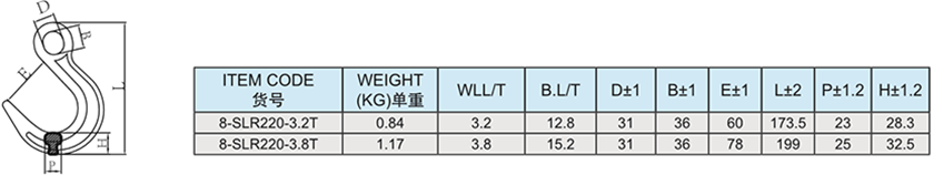 SLR220-合金鋼無舌眼型大開口鉤